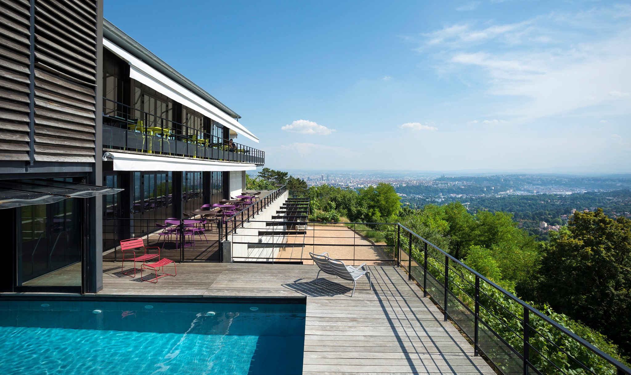 À Saint Cyr au Mont d’Or, l’Ermitage Cuisine à Manger… Ici vous dominez Lyon, la vue est imprenable, et on ne s’en lasse pas! Un lieu qu’on aime particulièrement pour sa proximité de Lyon, et son cadre atypique… Votre séminaire entreprise ne sera perturbé que par le chant des oiseaux tant le lieu est calme et préservé, quant aux petits plats mijotés, on en redemande !